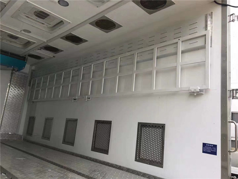 東風天龍恒溫運豬車整車上裝采用沖孔板和保溫板雙層板結構