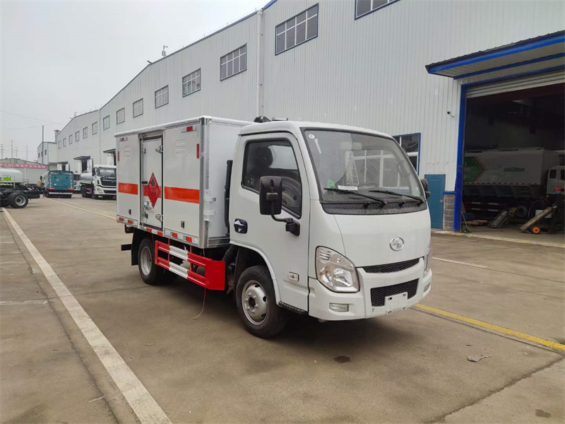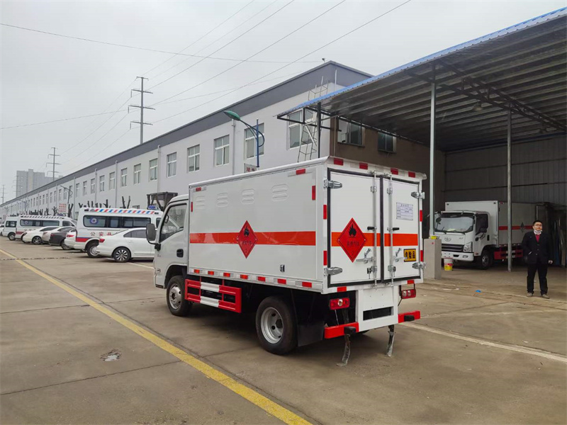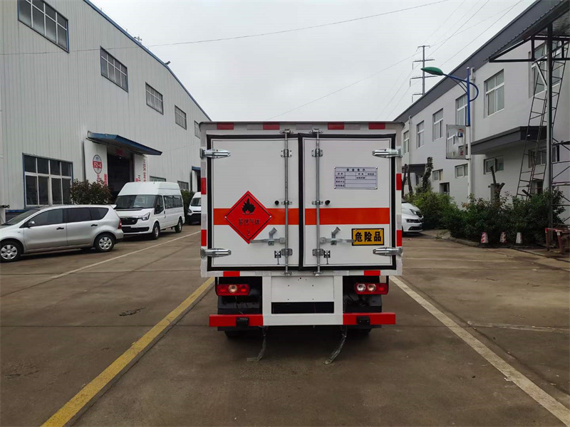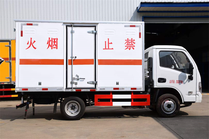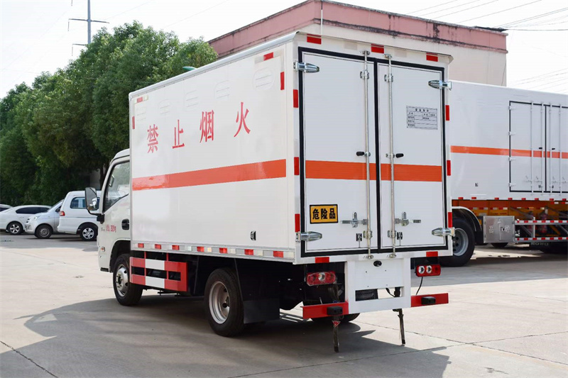 廂體配置:嚴格按照公告尺寸制作,外板采用1mm厚冷軋板有一次性成型的百葉窗,內飾為導電性能良好的鋁板有透氣孔,內襯為矩形管骨架牢靠穩定,內部填充為透氣防潮阻燃的擠塑板,四種材料經現代工藝復合而成,廂體外部上下鋁合金型材包邊,底板和車廂前下部鋪橡膠皮,后門雙開,右側前部單開門,嚴格按照國家危險品相關法規張貼。