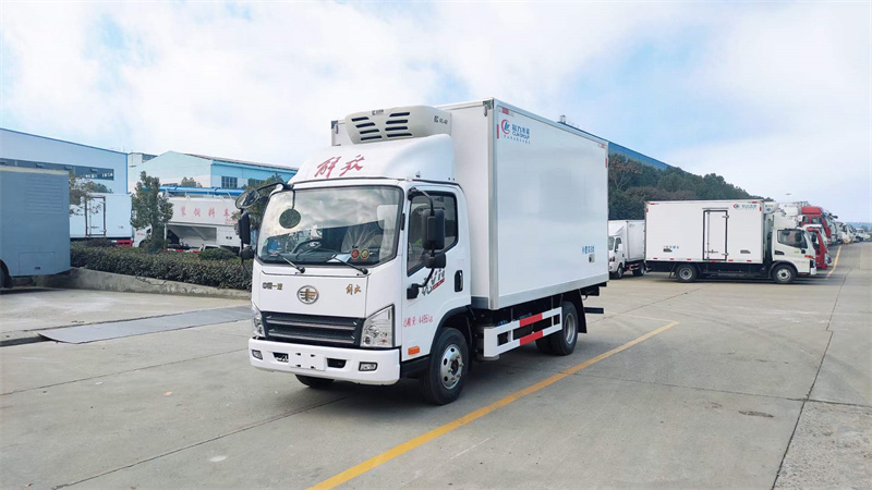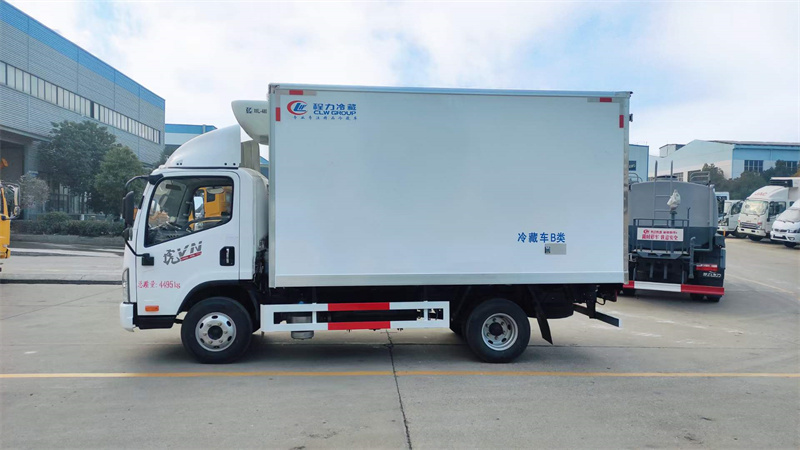 (1)制作工藝:冷藏車廂體采用真空吸附、液壓吸附一體成型生產線制造,三明治復合粘接,保溫性能達到國家A級標準。