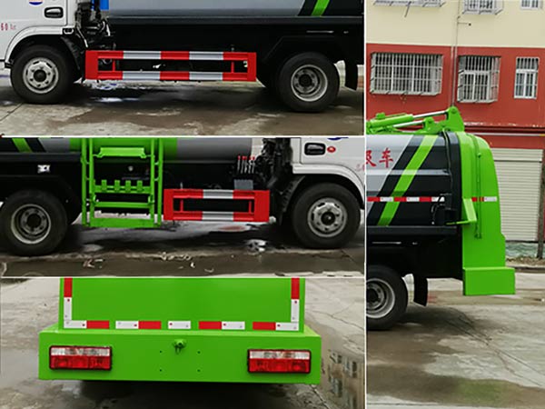 1、該車僅選用3308mm軸距底盤改裝。2、該車可選裝內(nèi)部卸料裝置,不影響整車外觀,但會引起整車重量變化,當(dāng)內(nèi)部選裝相關(guān)配置時整車整備質(zhì)量/額定載質(zhì)量對應(yīng)關(guān)系為(kg):配置A:無推板卸料裝置/4400/2830;配置B:推板卸料裝置/4650/2580;配置C:內(nèi)部加熱裝置/4650/2580;配置D:推板卸料裝置和內(nèi)部加熱裝置/4900/2330。3、防護(hù)材料:Q235B碳鋼,連接方式:左右側(cè)面防護(hù)均采用焊接連接,后防護(hù)裝置由專用裝置代替,離地最小高度為:410mm。4、ABS型號/廠家:ABS/ASR-12V-4S/4M/襄陽東風(fēng)隆誠機(jī)械有限責(zé)任公司.該車主要專用裝置:側(cè)裝垃圾桶提升裝置,主要用于餐廚垃圾收集及轉(zhuǎn)運(yùn)。5、隨底盤選裝駕駛室。